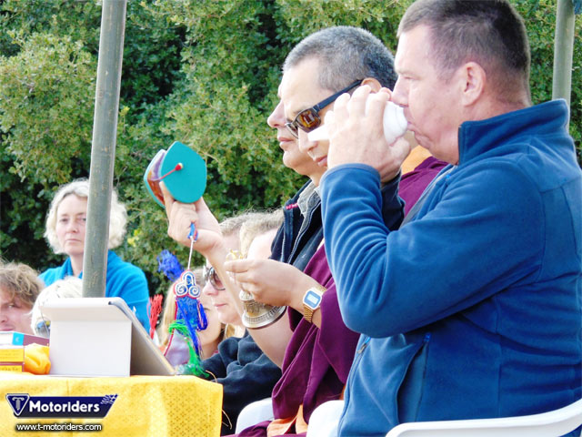 Προσήλθαμε με ευλάβια στον χώρο της τελετής που είχε δημιουργηθεί ακριβώς μπροστά από την Στούπα. Κάτω από την τέντα, οι πιστοί καθισμένοι στο χώμα περίμεναν υπομονετικά τον Ιερέα να αρχίσει.. Εμείς σε καρέκλες …